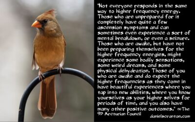 We have finished our evaluation of the human collective consciousness and its ability to handle higher frequency energies. Here is what we have discovered. Not everyone responds in the same way to higher frequency energy. Those who are unprepared for it completely have quite a few ascension symptoms and can sometimes even experience a sort of mental breakdown, or even a seizure. Those who are awake, but have not been preparing themselves for the higher frequency energies, might experience some bodily sensations, some weird dreams, and some physical dehydration. Those of you who are awake and do expect the higher frequencies as they come in have beautiful experiences where you tap into new abilities, where you know yourselves as your higher selves for periods of time, and you also have many other positive outcomes.