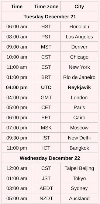 If we wish to achieve an impact on the physical plane and reach the critical mass, tt is extremely important that we do our meditation exactly at the time which has been determined by the Light Forces to have the maximum positive impact, which is at 4:00 pm UTC on December 21st. Timetable for other time zones is here: