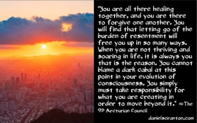 Therefore, you are being called at this time to focus on what you love, instead of trying to defeat what you fear or what you hate. And when you truly understand that all judgment is judgment of the self, then you won’t want to do it anymore. You are all there healing together, and you are there to forgive one another. You will find that letting go of the burden of resentment will free you up in so many ways. When you are not thriving and soaring in life, it is always you that is the reason. You cannot blame a dark cabal at this point in your evolution of consciousness. You simply must take responsibility for what you are creating in order to move beyond it.