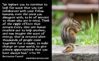 And we implore you to continue to look for ways that you can collaborate with your fellow humans, even the ones you disagree with, to be of service to those who are in need. Think of the ripple effect that occurs every time one human reaches out to help another, and now imagine the wave of energy that is created when thousands of people come together for a cause, to make change on your world, to give others opportunities that you have always had.