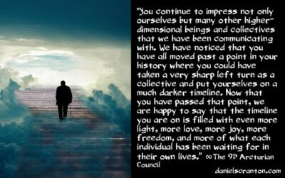 We are celebrating yet another milestone for humanity, as you continue to impress not only ourselves but many other higher-dimensional beings and collectives that we have been communicating with. We have noticed that you have all moved past a point in your history where you could have taken a very sharp left turn as a collective and put yourselves on a much darker timeline. Now that you have passed that point, we are happy to say that the timeline you are on is filled with even more light, more love, more joy, more freedom, and more of what each individual has been waiting for in their own lives.