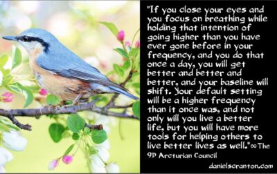 Most other humans would give you a very physical goal to reach for and give you a timeframe for achieving that goal, but we are not human. And so, we inspire you now through the story we have just told you to go higher and higher in terms of how you can feel and what you vibrate. If you close your eyes and you focus on breathing while holding that intention of going higher than you have ever gone before in your frequency, and you do that once a day, you will get better and better and better, and your baseline will shift. Your default setting will be a higher frequency than it once was, and not only will you live a better life, but you will have more tools for helping others to live better lives as well.