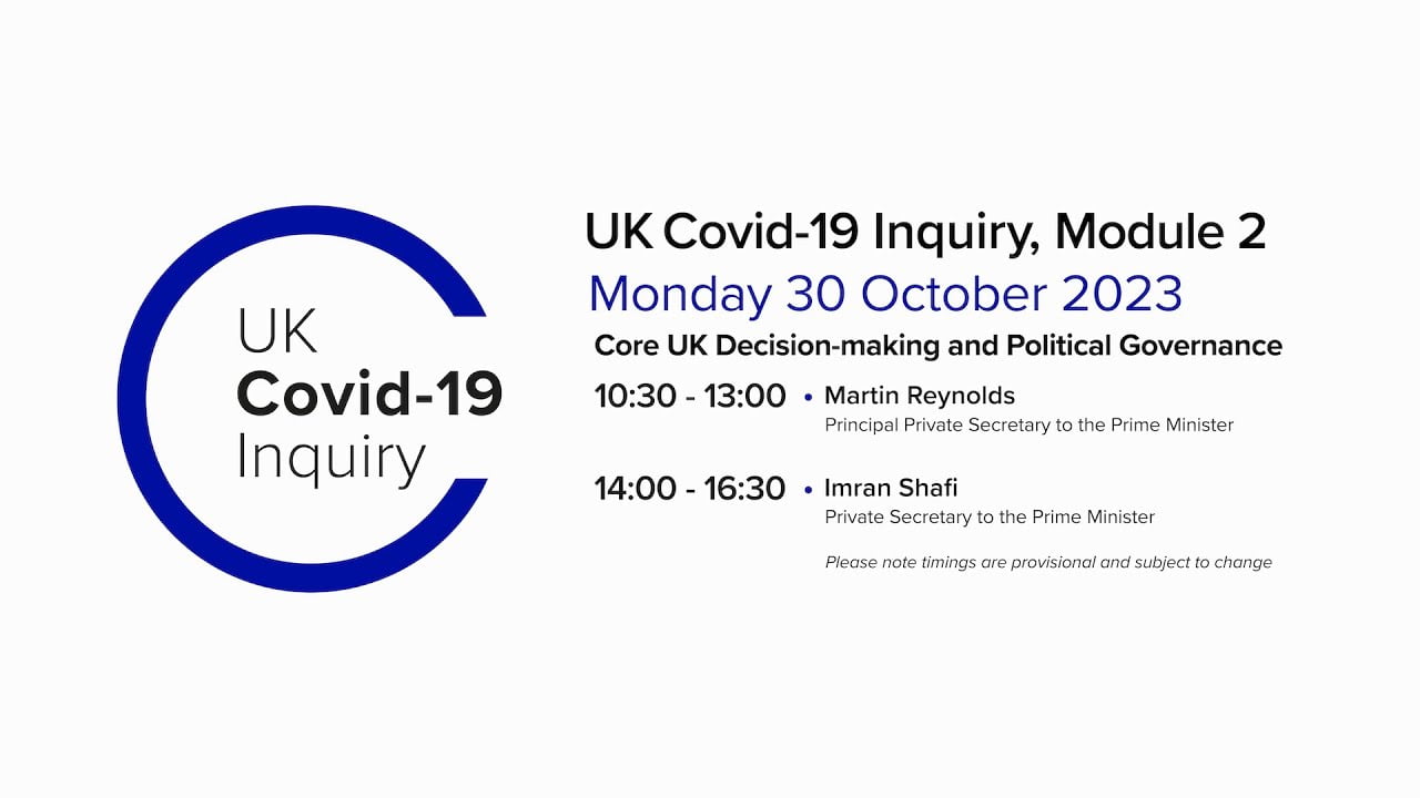 UK Covid-19 Inquiry: Public Hearings – Module 2 (Core UK decision-making and political governance) | Week 3 – Mon, Oct 16 to Thu, Oct 19, 2023