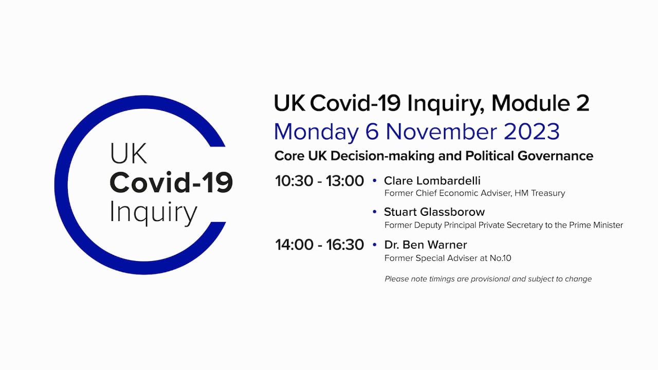 UK Covid-19 Inquiry: Public Hearings – Module 2 (Core UK decision-making and political governance) | Week 6 – Mon, Nov 20 to Thu, Nov 23, 2023