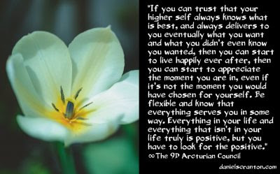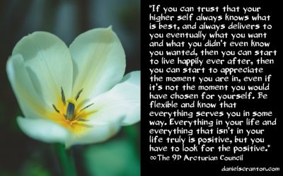 If you can trust that your higher self always knows what is best, and always delivers to you eventually what you want and what you didn’t even know you wanted, then you can start to live happily ever after, then you can start to appreciate the moment you are in, even if it’s not the moment you would have chosen for yourself. Be flexible and know that everything serves you in some way. Everything in your life and everything that isn’t in your life truly is positive, but you have to look for the positive. And you do that after you have your meltdown, your temper tantrum about not getting what you want. You are allowed to experience those intense emotions.