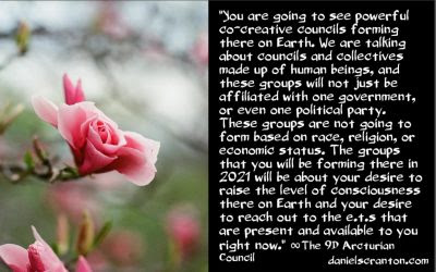 Now, as you start coming together in more powerful ways because of the connections that you feel to one another, you are going to see powerful co-creative councils forming there on Earth. We are talking about councils and collectives made up of human beings, and these groups will not just be affiliated with one government, or even one political party. These groups are not going to form based on race, religion, or economic status. The groups that you will be forming there in 2021 will be about your desire to raise the level of consciousness there on Earth and your desire to reach out to the e.t.s that are present and available to you right now.