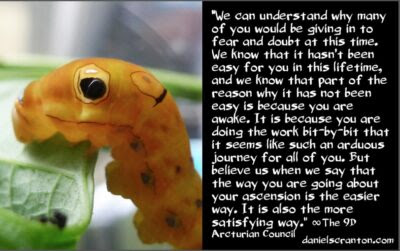 We can understand why many of you would be giving in to fear and doubt at this time. We know that it hasn’t been easy for you in this lifetime, and we know that part of the reason why it has not been easy is because you are awake. It is because you are doing the work bit-by-bit that it seems like such an arduous journey for all of you. But believe us when we say that the way you are going about your ascension is the easier way. It is also the more satisfying way.
