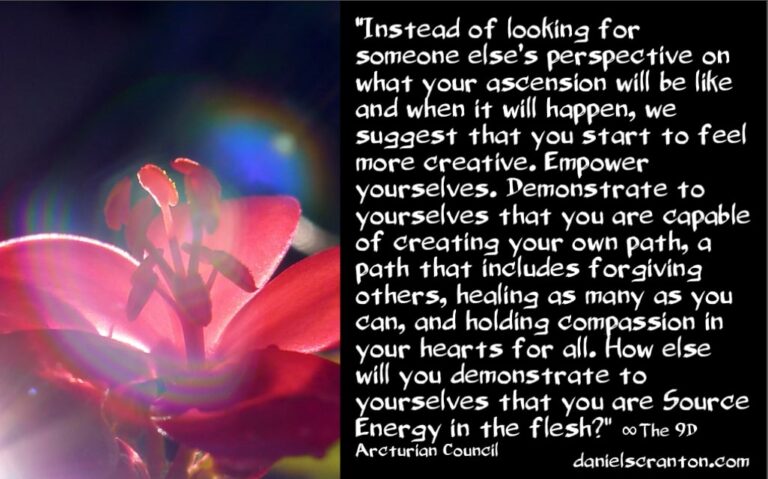 Instead of looking for someone else’s perspective on what your ascension will be like and when it will happen, we suggest that you start to feel more creative. Empower yourselves. Demonstrate to yourselves that you are capable of creating your own path, a path that includes forgiving others, healing as many as you can, and holding compassion in your hearts for all. How else will you demonstrate to yourselves that you are Source Energy in the flesh? If someone or something is going to do it all for you, and you get to carry all of your resentment, all of your judgment, all of your anger with you to the next version of Earth, then you will not have given yourselves the opportunity to evolve.