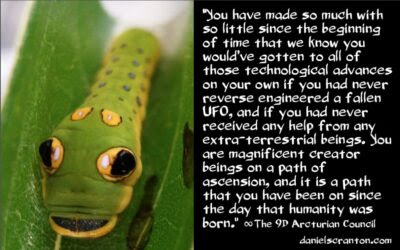 And your creativity doesn’t stop there. You have made so much with so little since the beginning of time that we know you would’ve gotten to all of those technological advances on your own if you had never reverse engineered a fallen UFO, and if you had never received any help from any extra-terrestrial beings. You are magnificent creator beings on a path of ascension, and it is a path that you have been on since the day that humanity was born.